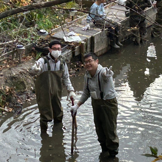 また、胴長を着装したメンバーが池に入り、蓮の苗を植えました。