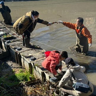 2025年度、第1回目の亀池ボランティア活動は、日差しはあっても風の強い陽気でしたが、石垣の下は無風状態で、ボランティア日和となりました。