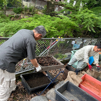 前回手直しした手作りクレーンで腐葉土を釣り上げ、ゴミを取り除いてストックすることができました。クレーンはまだまだ改良の余地がありました。